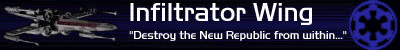 Comprised of Ex-Rebel pilots, this subgroup consists of Imperial Blooded individuals that prefer to fly their alphabet fighters (I.E. X-Wing, Y-Wing, A-Wing, B-Wing, etc.) in the X-Wing Series of Games. The Infiltrator Wing Commander, who is trained in the tactics and maneuvers of the Rebellion and commands from a Mon Calamari Cruiser, leads this group of loyal band of "wolves in sheepskin."